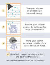 How To Use: Simply wet your shower steamer and hang your sachet anywhere outside of the direct stream of water. Enjoy the spa-like aromatherapy experience!