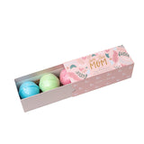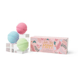 Includes: 3 x 3.2 oz Bath Bombs in Purple, Pink, & Mint Green